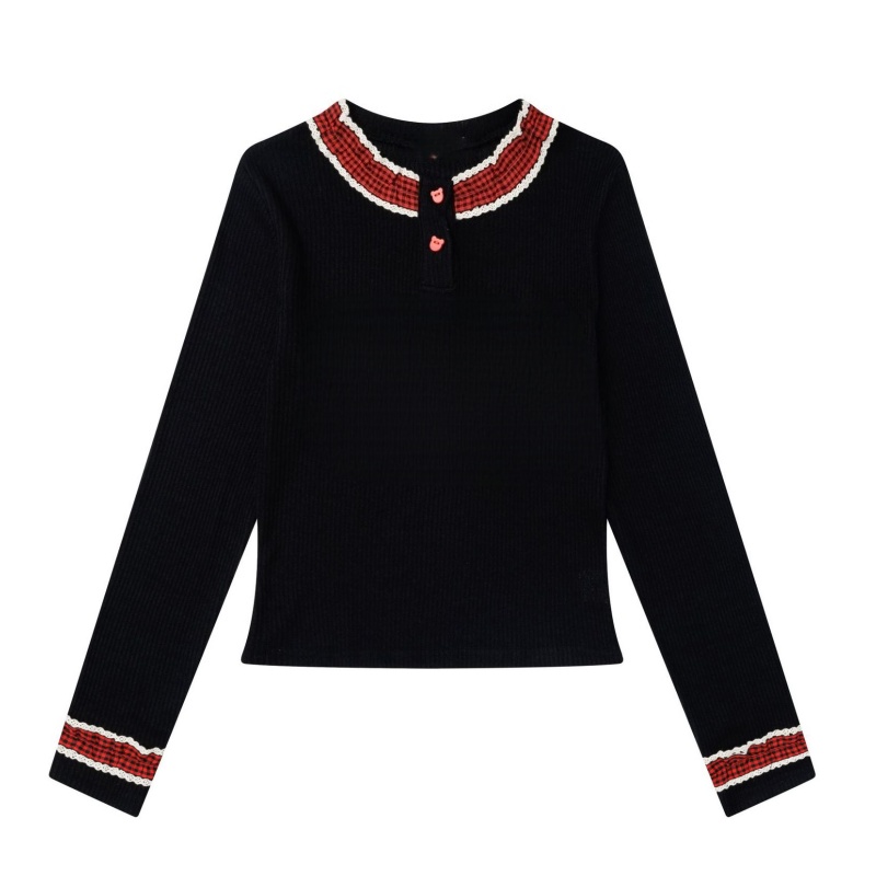 Retro-Inspired Contrast Color Black LongSleeve